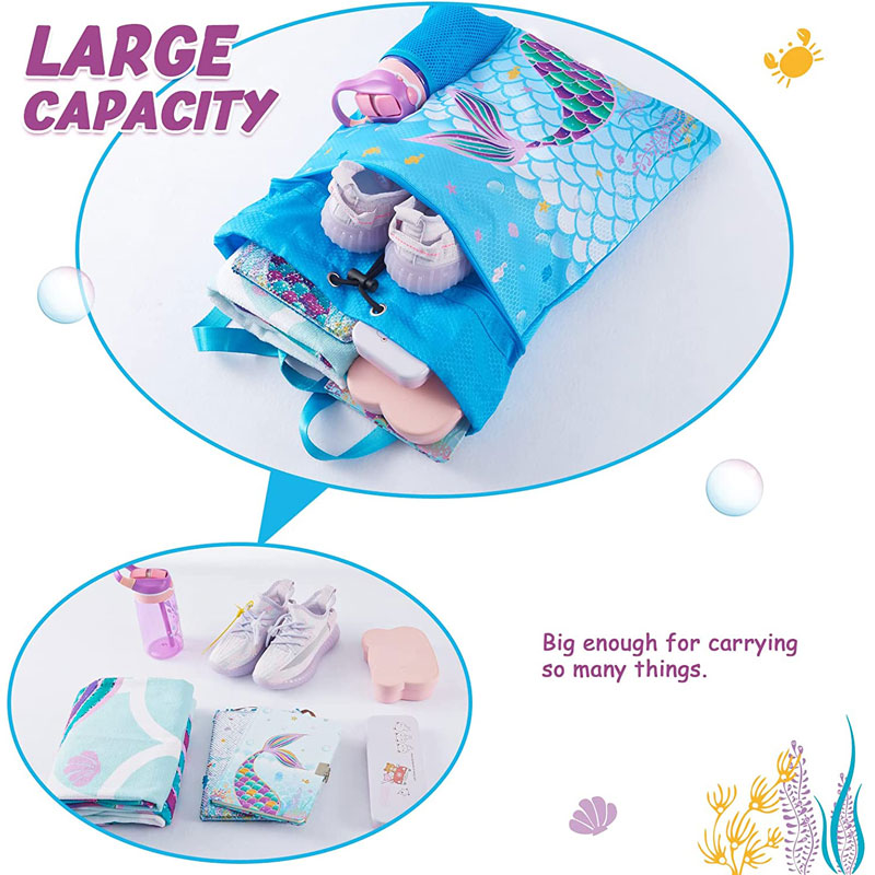 · 【ဆွဲဆောင်မှုရှိသော အသွင်အပြင်】 ကိုယ်တိုင် ဒီဇိုင်းထုတ်ပြီး ထုတ်လုပ်ပါသည်။ အဆင့်မြင့်ပုံနှိပ်ခြင်းလုပ်ငန်းစဉ်။ ခရမ်းရောင်၏ နောက်ခံအရောင်ဖြင့် ဂျယ်လီငါးများ၊ ပင်လယ်မြင်းများနှင့် ပင်လယ်မြက်များ ဝန်းရံထားသည့် ကလေးများ၏ ကျောပိုးအိတ်ပေါ်တွင် အသက်နှင့်တူသော ရေသူမတစ်ကောင် ပေါ်လာသည်။ ကလေးတွေက သဘောကျလိမ့်မယ်။